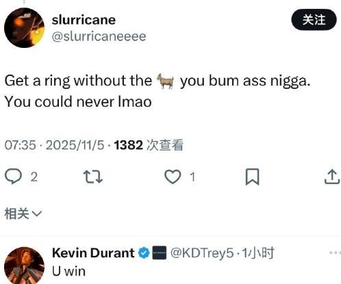 11月5日,或许是因为火箭队最近取得了胜利,杜兰特难得放松下来,有时间继续对球迷说坏话。一名球迷表示:“不山羊(指库里),你有能力赢得总冠军,垃圾,你就是做不到!”杜兰特回应:“你赢了!”在杜兰特的评论区,人们发表了对杜兰特抱大腿的恶评。这也是杜兰特职业生涯中无法回避的一个主题。不过,必须承认,勇士队得益于杜兰特的加盟,轻松拿到了两座总冠军。这本身就是两方面都好的事情。毕竟,除非勇士队自己愿意,否则杜兰特是不可能加盟勇士队的。你还必须承认格林对杜兰特的垃圾话,尤其是格林的著名公式:“在你来之前,我们已经是冠军了!”这些话对于杜兰特来说是极大的伤害。离开勇士队之后,杜兰特一直想证明自己的价值。即使没有库里,我们也能成为冠军!这是一个耻辱杜兰特没有运气,也没有实力。后来他先后签约篮网和太阳,但都因种种情况而以失败告终。杜兰特今年夏天加盟火箭队。这是杜兰特离开勇士队以来最强的球队。火箭队是目前最接近夺冠的球队,攻防一体。希望杜兰特这次能够实现愿望!