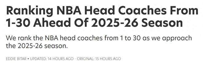 乌杜卡火箭队排名第四!随着新赛季的临近,美国媒体Fadeowworld宣布了他们在新赛季的教练分类,Redick Lakers占据了第14位,勇士队的优异教练Cole占据了第三名。第五名:泰隆(快船)泰隆·卢(Tyron Lu)是现役场所最好的选择之一,尤其是在季后赛和高压比赛中。泰隆·卢(Tyron Lu)是一名故意调整对齐方式的教练。他还带领骑士队以这种风格赢得冠军,并成为一名宝贵的冠军教练。除了大胆的就业策略外,泰隆·卢(Tyrone Lu)还非常适合利用势能来开发残留的矩阵来激活边际玩家面对挑战。加入快船时,这尤其明显。在对小米等中央球员的病变之前,泰隆·卢(Tyrone Lue)现在已经为免费表演制作了设备。他的训练风格使他可以上下移动,尤其是在Reg期间乌拉尔季节也值得前五位。第四名:乌杜卡(火箭)乌杜卡(Uduka)是一位艰难,艰难而严格的教练。尤其是在防守方面,乌杜卡(Uduka)不欺骗球员,甚至允许明星球员。这与泰隆·卢(Tyrone Lou)完全不同,泰隆·卢(Tyrone Lou)是第一个灵活而又不断变化的超级巨星。在这种铁拳风格的情况下,乌杜卡(Uduka)接管了火箭之后,只有两个赛季将一支球队的火箭击败在竞争对手以下。但是,随着杜兰特(Durant)的参与,新赛季将是对乌杜卡(Uduka)的考验。如何处理与超级巨星的这种关系将决定火箭是否可以争夺冠军,以及您是否可以再进入前三场比赛。第三名:就获得科尔(战士)的荣誉而言,有望成为现代篮球的发展,科尔一直是过去十年中最好的NBA教练,赢得了四个冠军,以指导勇士队并建立自己的王朝。呼叫包括咖喱,朱门和其他玩家需要建立最无私的ND团队基于联盟历史上的球队,所有系统中的球员都必须具有宝贵的球权利,加快球时代的到来,使角色变黑,无休止的防守变化和三分球射门必须成为最后一个低球。但是,科尔的训练风格被抑制了制度,无法继续成功的路线,从而抑制了穆迪和库米纳等球员的成长,而无需获得更高的分类。第二名:Carlisle(Pacer)Carlisle是NBA最著名的战术老师之一。她可以发展HDEFENDER的能力,并且可以创建无私的攻击系统也很好。 Don Sic的游戏“大袋子和大型”与训练哲学相矛盾,而卡莱尔选择离开他的老俱乐部,小牛,并最终加入了Pacer,后者是一支薄弱的东部球队。结果,卡莱尔带领他的球队在联盟中做出了最好的进攻,并晋升为鳍ALS毫无疑问,他是目前服务中最好的教练之一。第1号:Spoelstra(热)由Riley,Heat Fox和Spoelstra选出的教练是榜单上的无可争议的第一名,因为他们在超级巨头周围争夺冠军,并且可以在超级巨头短暂的情况下培养以跟随系统。这是为数不多的球员之一。可以整合两条矛盾的路线的知名培训师之一。他引人入胜的智慧战术能力和菲尔德的协调能力使他征服了三个巨人詹姆斯,韦德和博世,加入了三人,以多次赢得冠军。面对巨人的压力,Spoel能够抵抗压力并坚持收入,从而创造了一种因热而导致热量的铁血队的文化。三个巨人离开球队之后,他们仍然几次参加了非常有限的才华横溢的比赛。从任何角度来看,Spoel应该在列表的p。其余的分类如下:Dagnott(Thunder),Untkinson(Cavs),Kidd(Mavericks),Mazura(Celtics),Finch(Timberwolves)。 11-20:大型员工(活塞),Nass(76人),Mosley(魔术),Redick(Lake),Snyder(Hawks),Hardy(Jaz),Donovan(Bulls),Mike Brown(尼克斯(Knicks)),河流(Bucks),Billup(Billup(Billup(Billup)(blaill)); 21-30:绿色(鹈鹕),米奇(马刺),费尔南德斯(Nets),阿德曼(掘金),查尔斯利(黄蜂),拉贾科维奇(猛禽),克里斯蒂(King)(国王),布莱恩·基夫(Brian Kieff)(wizard),isarou(grizzy)。
